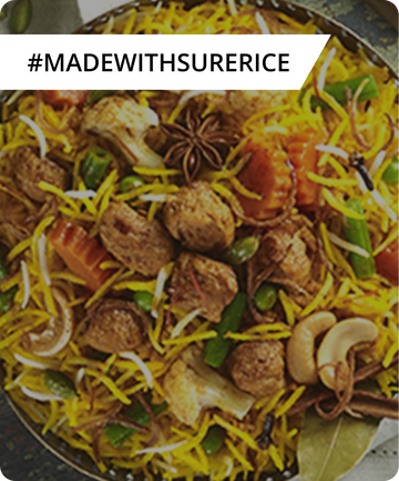 SureRice offers Basmati, Pulav, Khichdi, and Biryani rice. Basmati has long grains and a fragrant aroma, ideal for biryanis. Pulav rice is slightly shorter and perfect for pulaos. Khichdi rice is short-grain and creamy, great for one-pot meals. Biryani rice is a blend of spices and long grains, creating rich dishes.